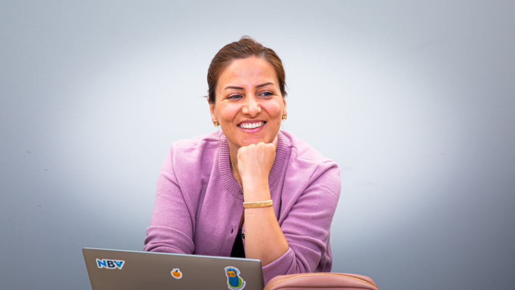 När Saadat Hajigharnaei kom till Sverige 2017 kunde hon inte ett ord svenska. Men så mötte hon NBV. I dag jobbar hon själv på studieförbundet för att få fler inkluderade i svenska samhället. ”Jag vill skapa samma möjligheter som jag fick. Jag blev kär i NBV, verkligen”, säger hon.
